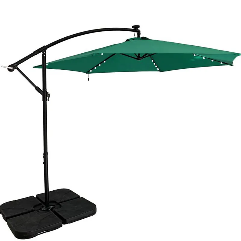 Solar Cantilever Paraply er et meget miljøvenligt parasolvalg. Den er udstyret med et genopladeligt solcellebatteri, der kan oplades af sig selv, når solen er tilstrækkelig, og kan bruges til lysstriben om natten. Denne teknologi koster ikke penge og spilder ikke naturlig energi og er meget værdig til at blive promoveret. Sådan en fremragende paraply er lavet i Kina, med en stålstruktur, som har sikre og stabile egenskaber, er giftfri og er meget velegnet til udendørs brug. Brug af grønt som solsejl inkarnerer fuldt ud miljøbeskyttelse.