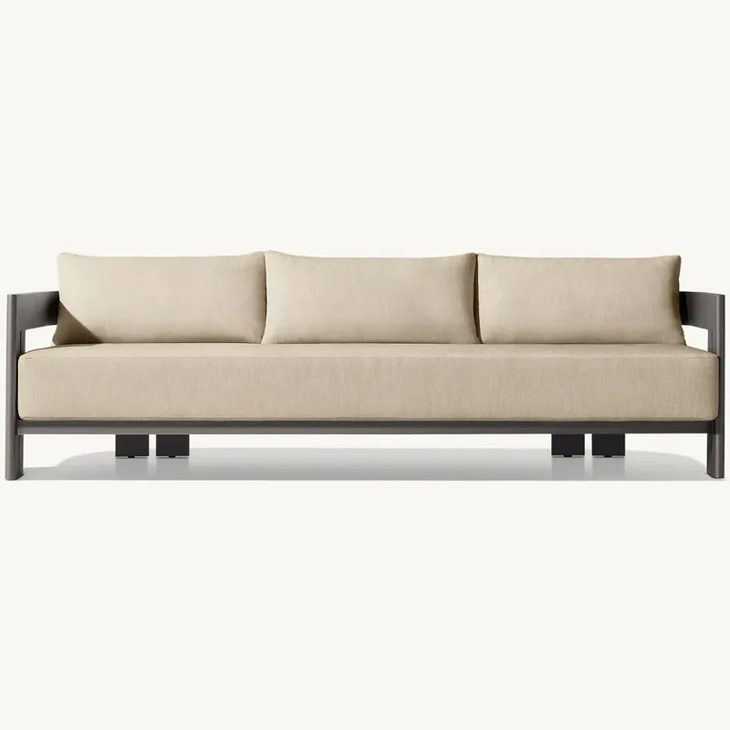 Vores havesofamøbler i aluminium er konstrueret af højkvalitets aluminium, kendt for sin styrke og lette egenskaber. Metallet er behandlet med en vejrbestandig pulverlakering, hvilket sikrer, at det kan modstå forskellige miljøforhold, fra intens sol til regn og sne, uden at korrodere eller falme. Det slanke, moderne design af hvert stykke tilbyder en tidløs appel, der komplementerer enhver udendørs indretning, fra klassisk til moderne.